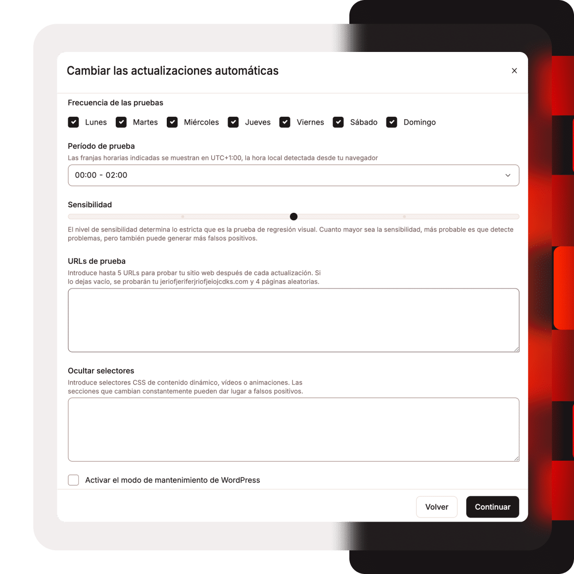 Mantén tus plugins y temas actualizados automáticamente, detecta problemas antes de que ocurran y revierte los cambios con facilidad, todo con una prueba gratuita de 31 días.