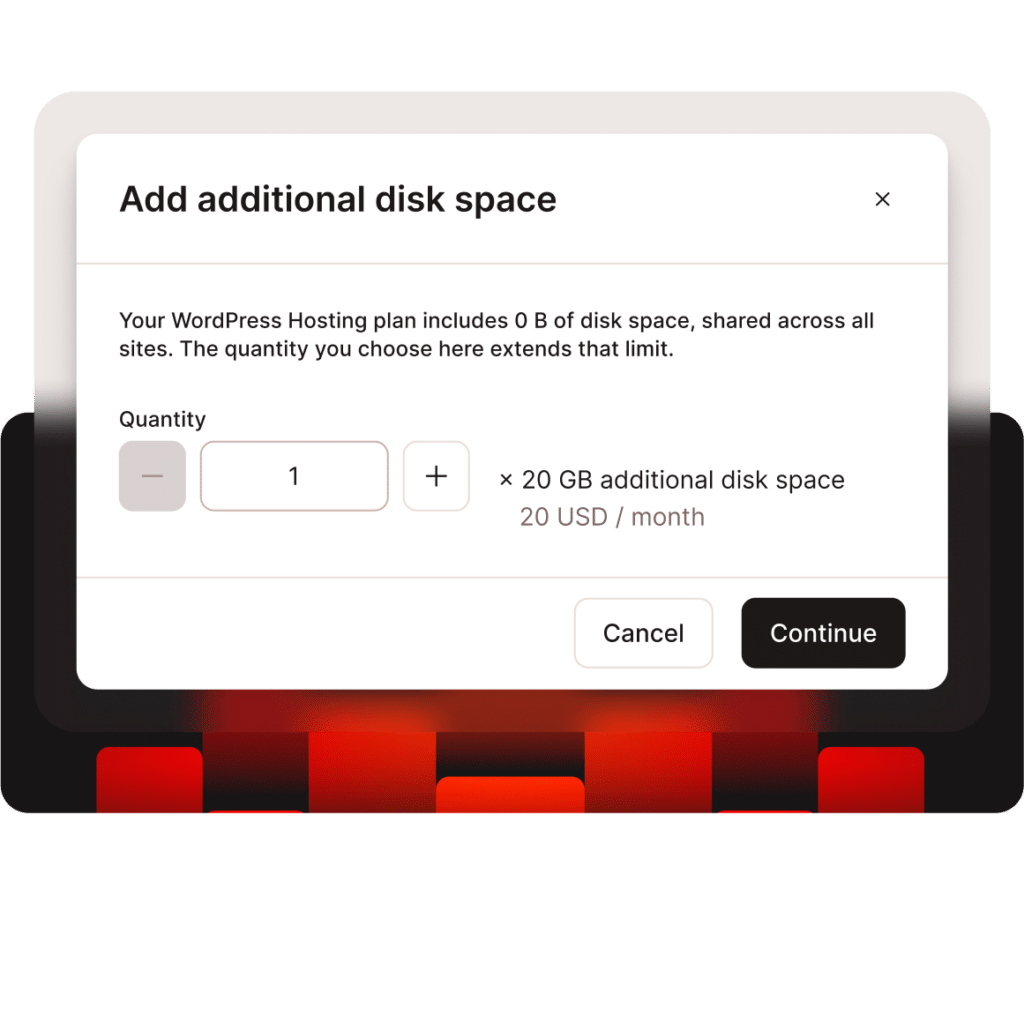 For additional flexibility, you can increase the storage space of your hosting plan with a few clicks inside the MyKinsta dashboard.