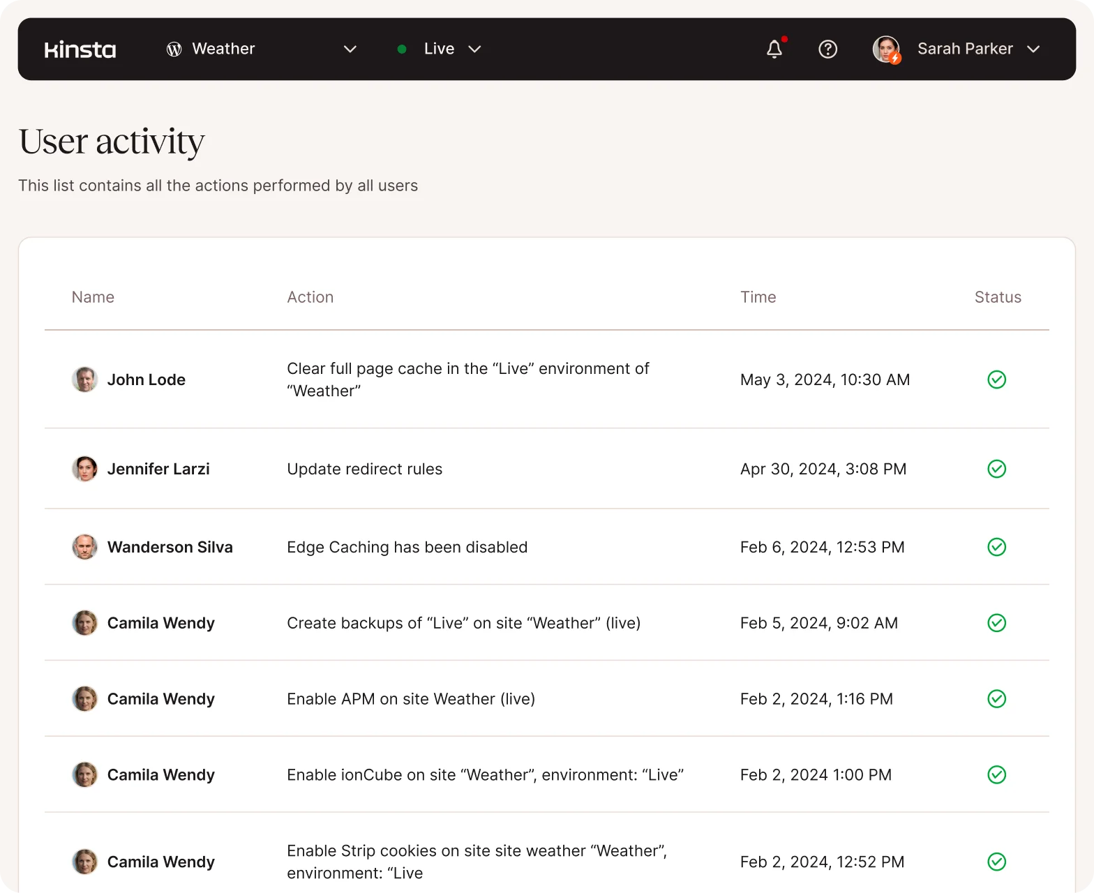 - MyKinsta user activity logs