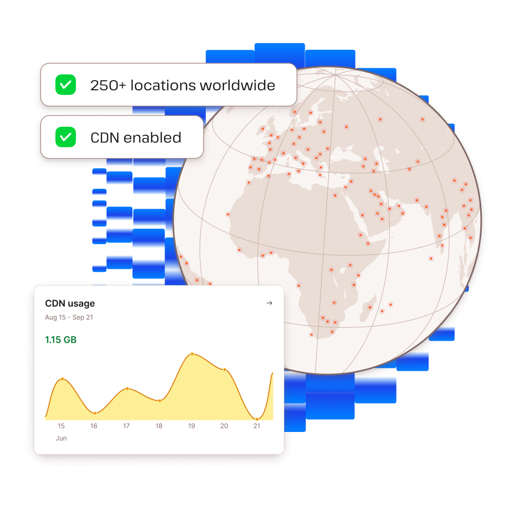 Senza alcun costo aggiuntivo, seleziona la regione più adatta a te e ai tuoi clienti. Scegli tra 27 data center. Inoltre, il nostro CDN dispone di 300 POP, garantendo al tuo sito web una presenza globale e una velocità senza pari.