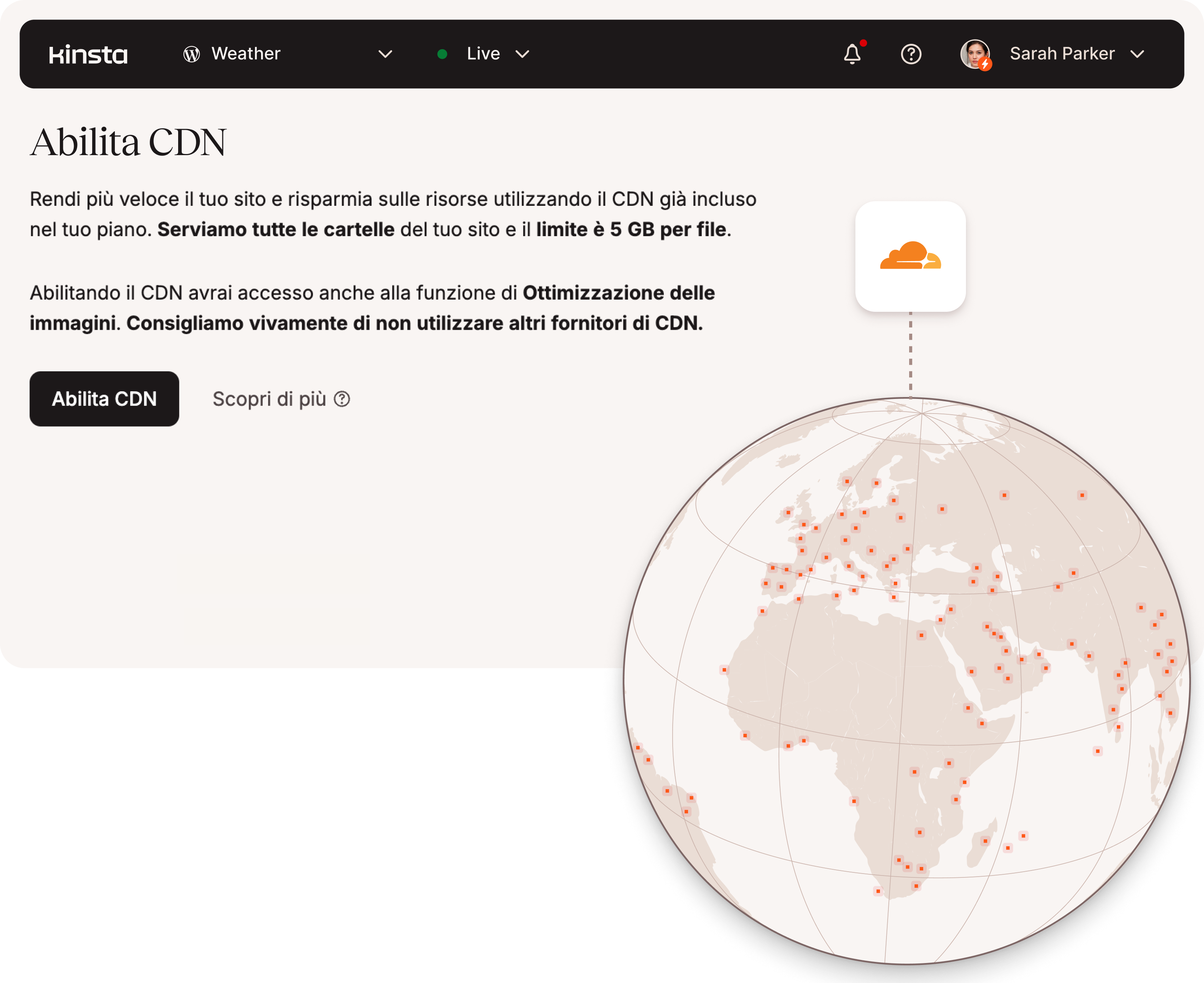 Tutti i piani includono il CDN di Kinsta, una rete di distribuzione dei contenuti ad alte prestazioni alimentata da Cloudflare con 300 POP per accelerare la consegna delle risorse in tutto il mondo. Tutti i piani includono larghezza di banda gratuita.