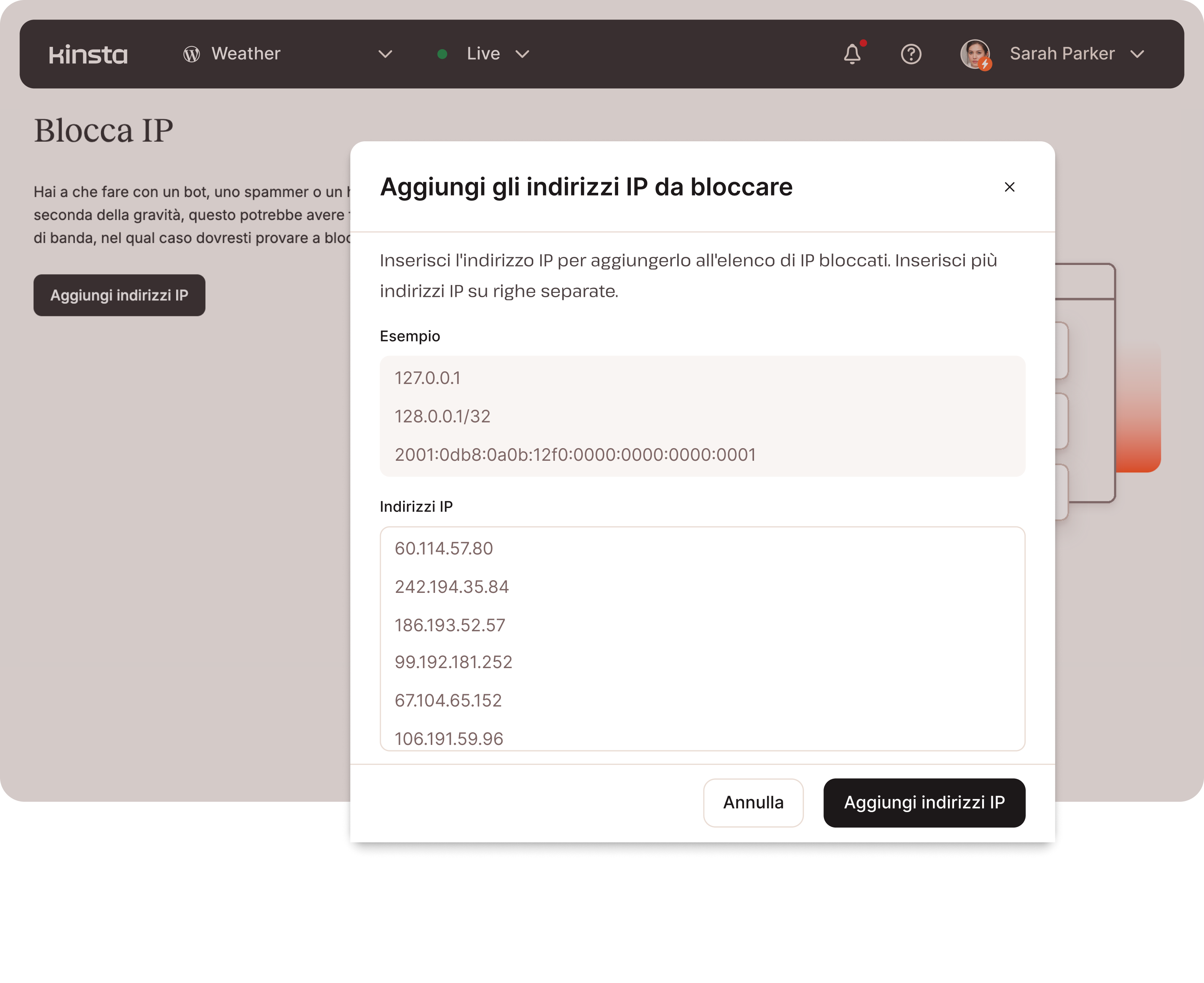 - Blocco degli IP