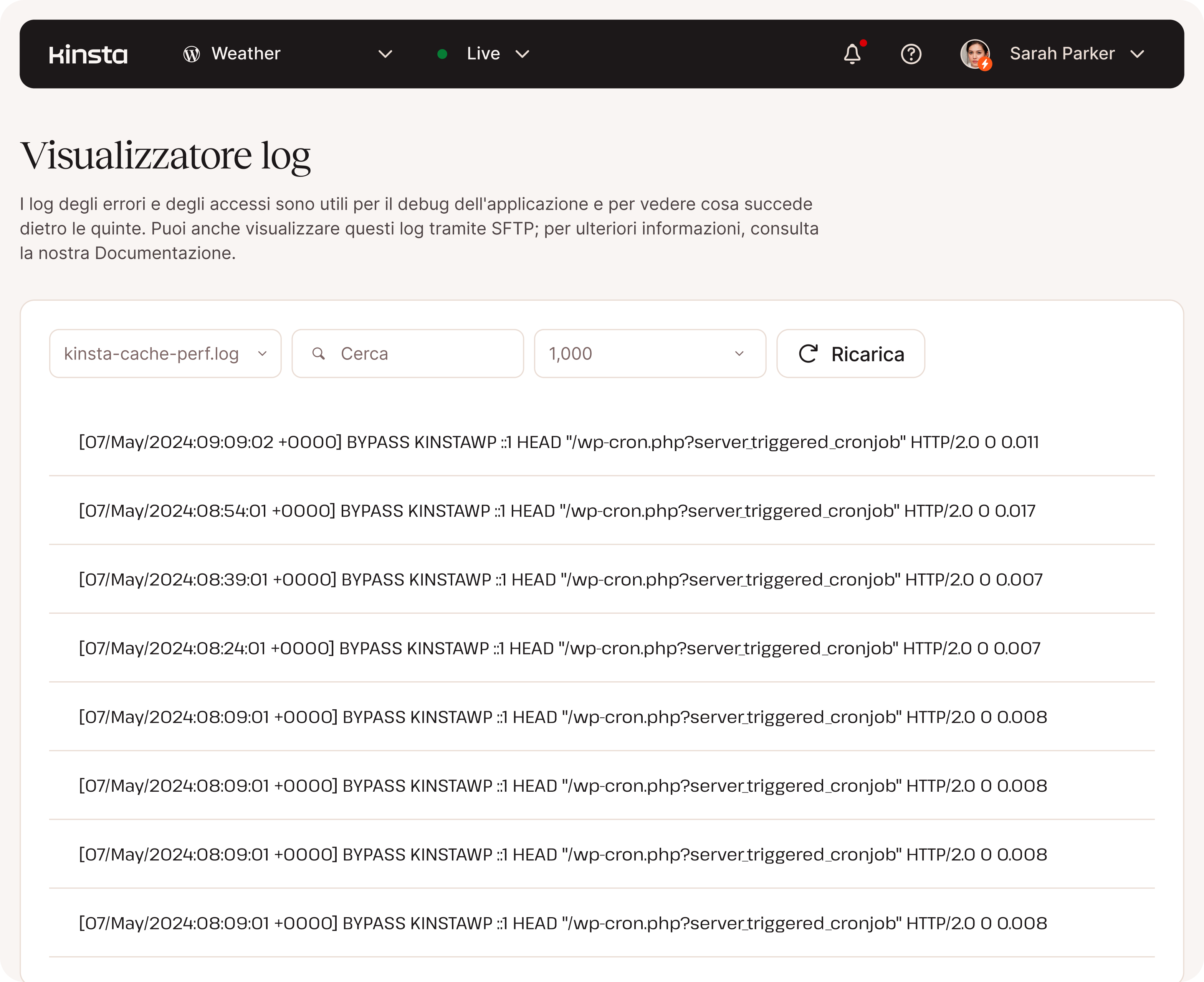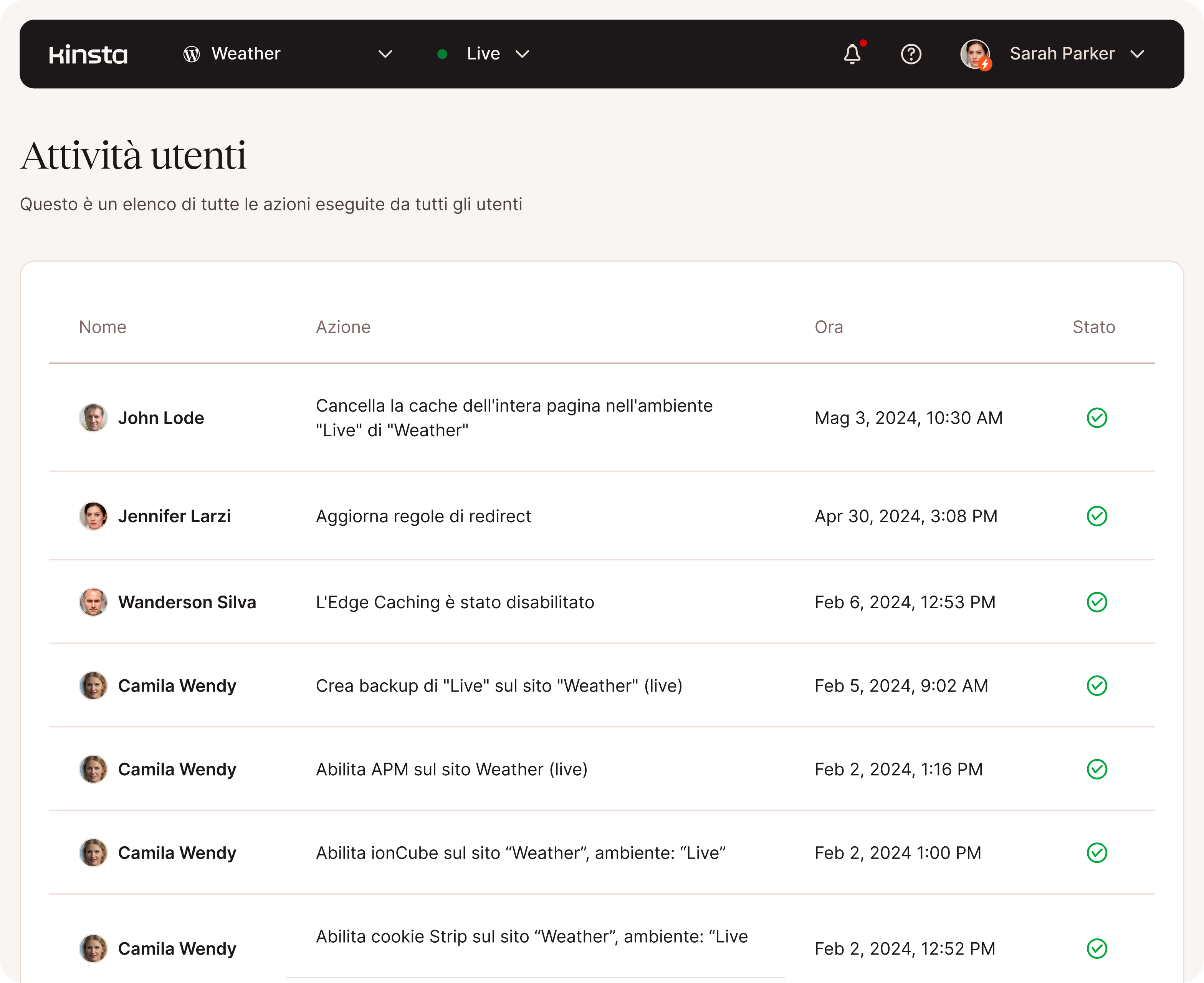 - Registri delle attività degli utenti di MyKinsta