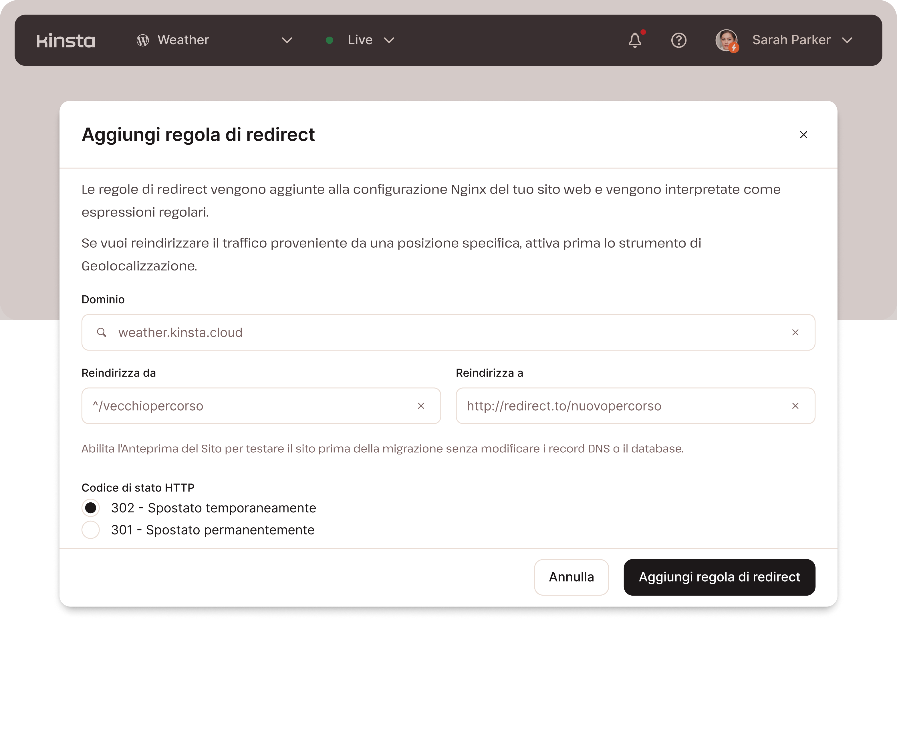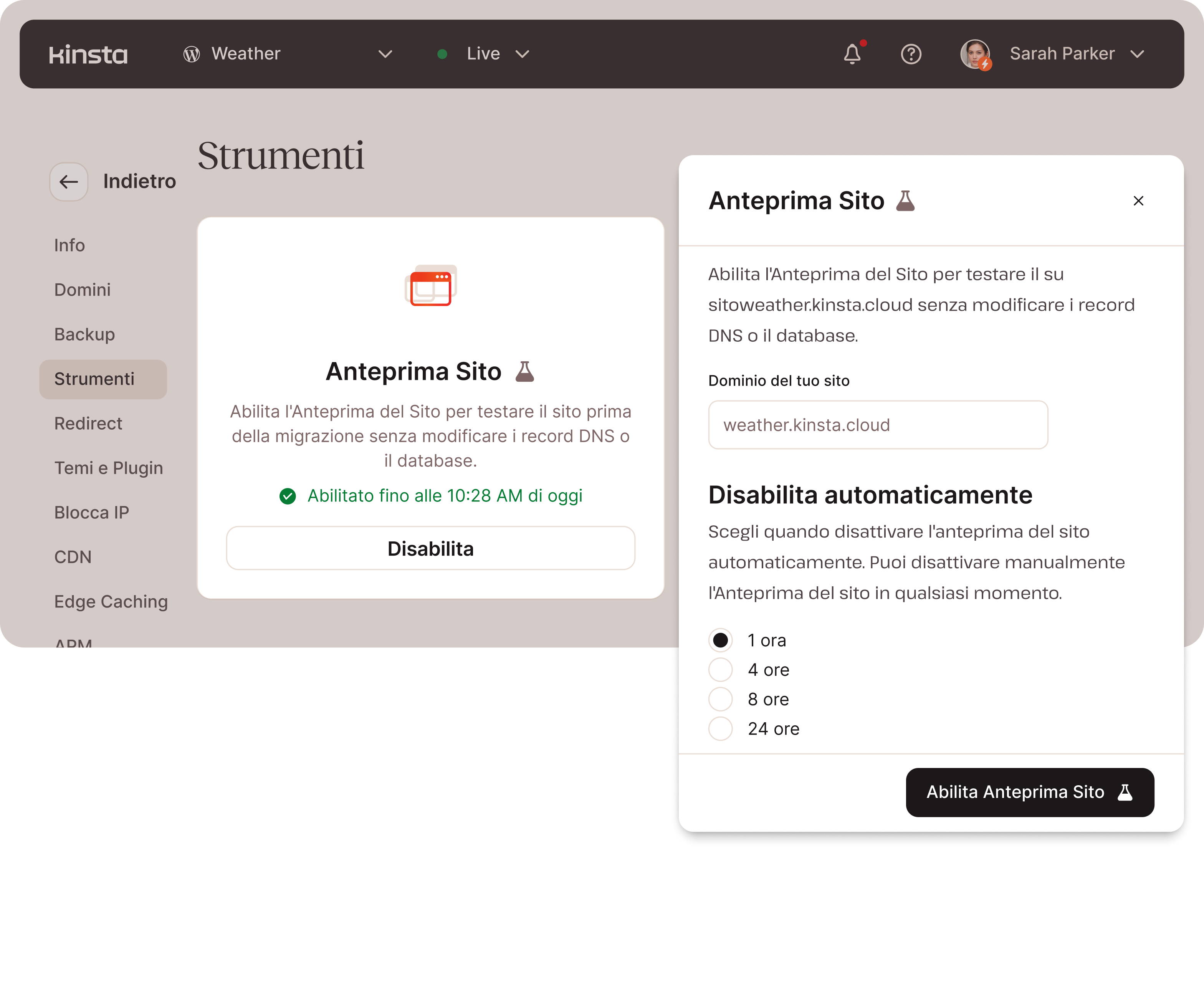 - Strumento di anteprima del sito per testare i siti senza aggiornare il DNS