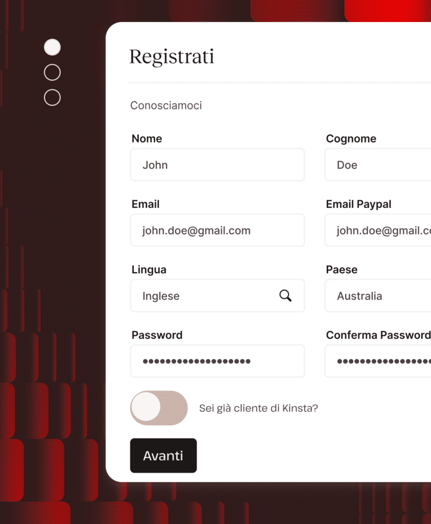 Kinsta può modificare o interrompere in qualsiasi momento, a sua esclusiva discrezione, tutti o parte dei livelli sopra indicati e i relativi vantaggi.