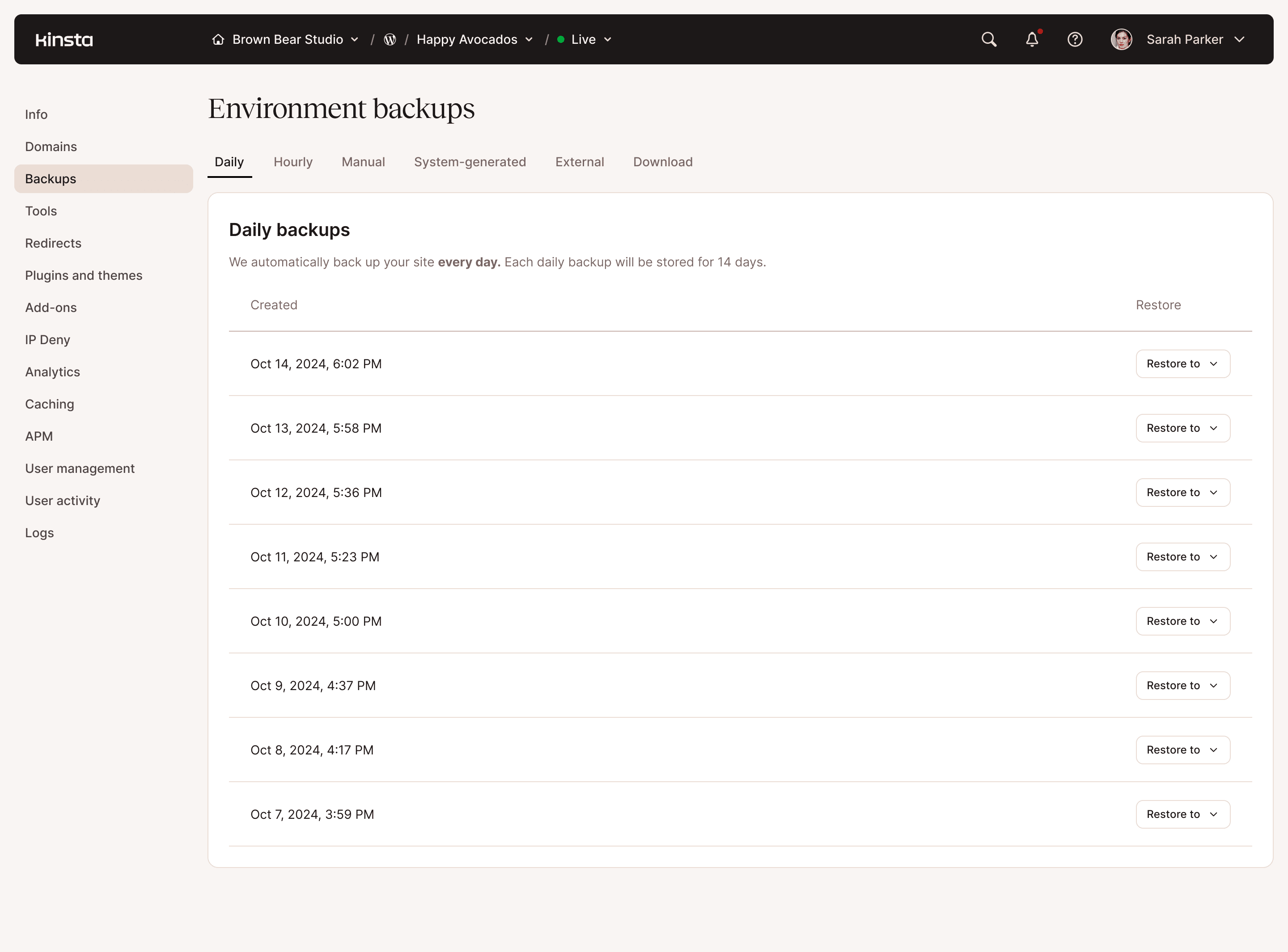 Daily automatic backups, plus flexible options to suit your workflow.