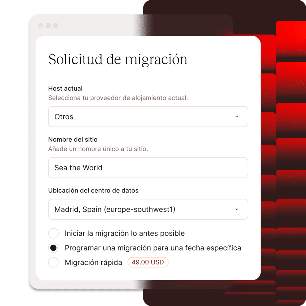 Todos nuestros planes incluyen migraciones gratuitas ilimitadas. Utilizamos scripts y SSH para garantizar que no se pierda ningún dato y que la interrupción de tu sitio sea mínima. Las migraciones se realizan en días laborables.
