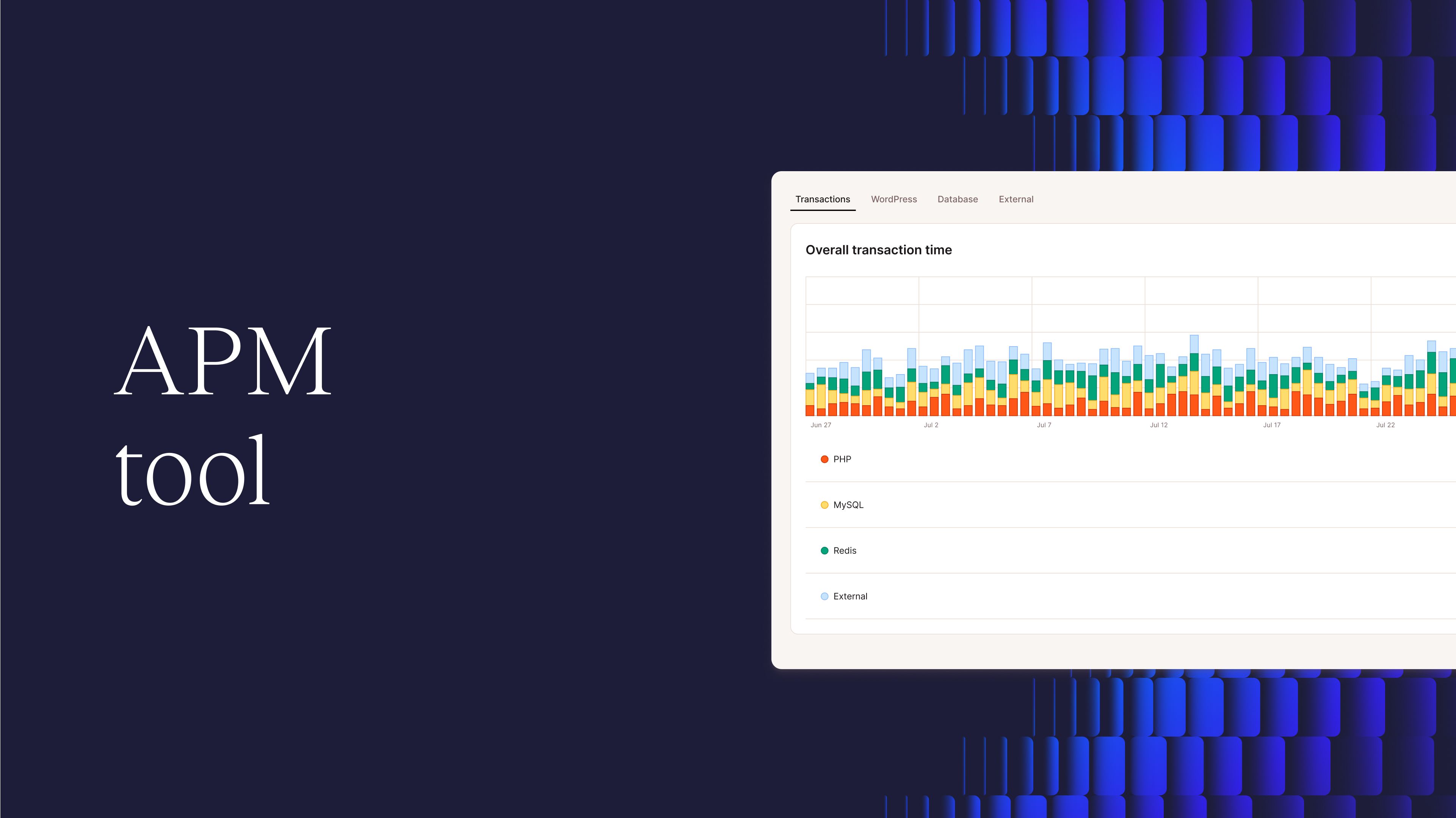Kinsta APM captures timestamped information about your WordPress site’s PHP processes, MySQL database queries, external HTTP calls, and lots more. Find out more in the APM Documentation.