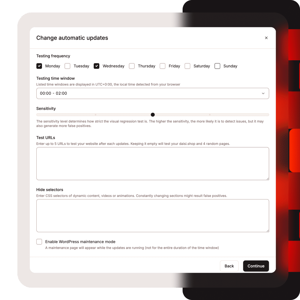 Keep your plugins and themes up to date automatically, catch issues before they happen, and roll back changes with ease — all with a 31-day free trial.