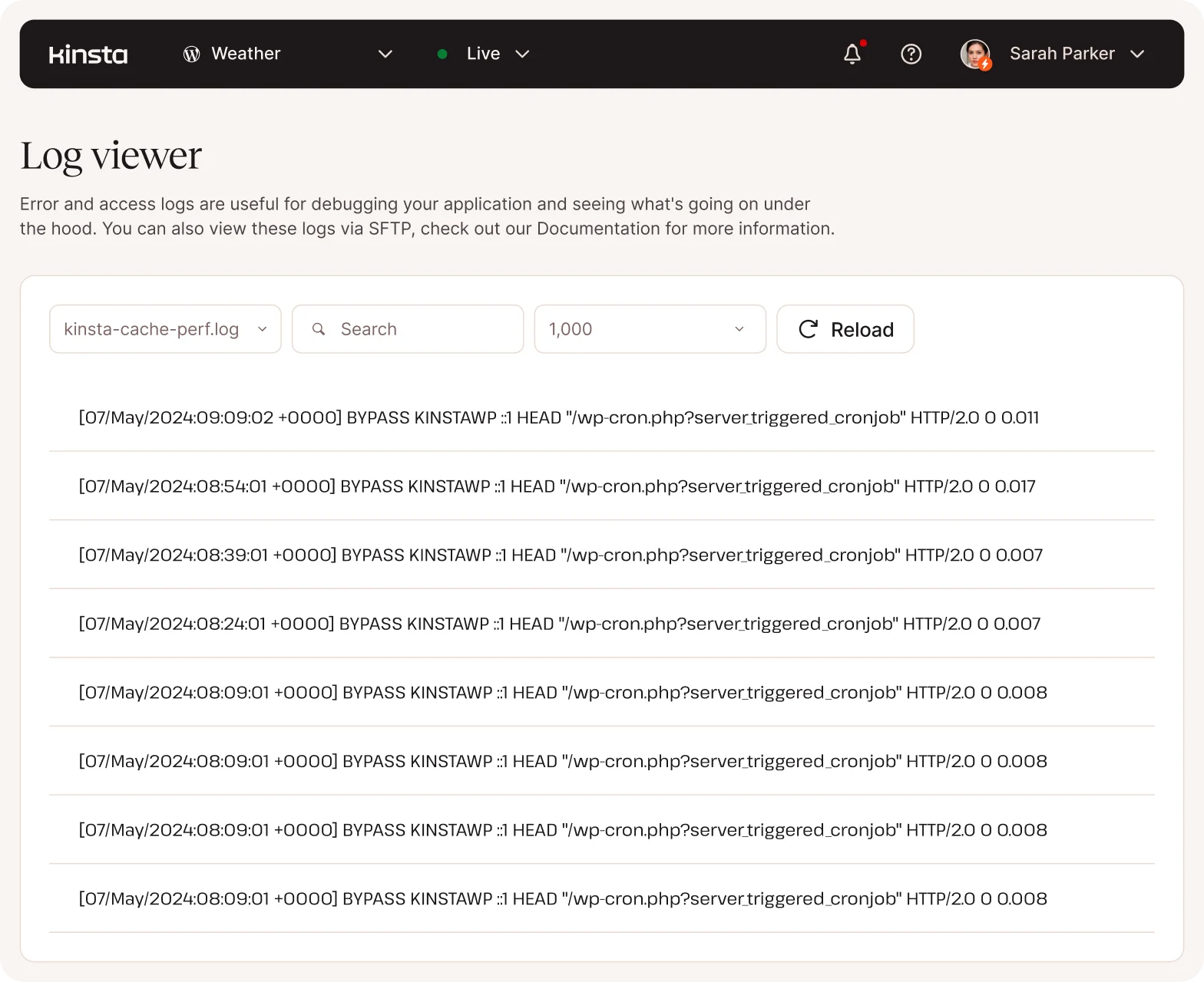 - Searchable error logs, cache logs, and access logs